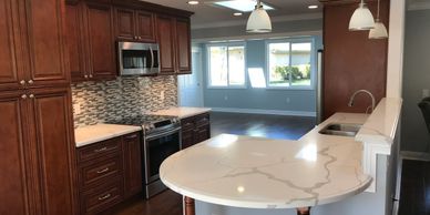 This renovation included a complete kitchen re-design, new appliances, built-in closets and office space, new doors, a pet spa and a new laundry room with more square footage.
